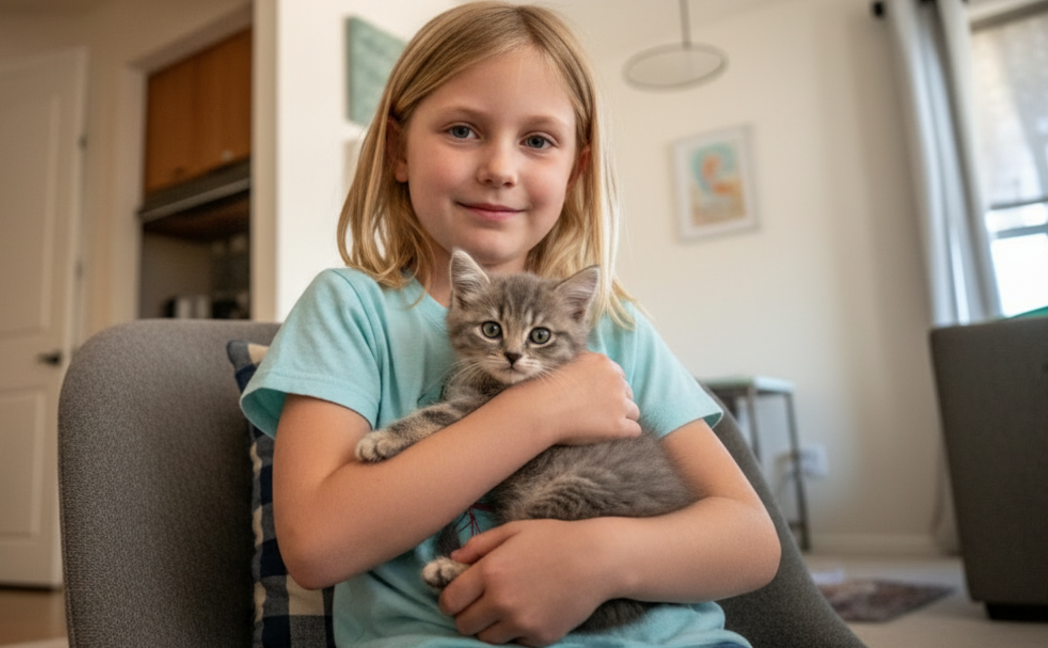 На ладонях у дочери лежал котёнок. Крошечный. Дрожащий. С закрытыми глазами и дыханием таким слабым, что его почти не было.