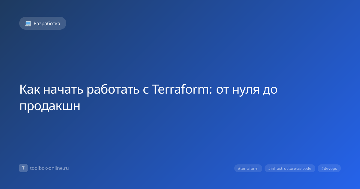 Terraform позволяет создать и управлять инфраструктурой в облаке за несколько минут — с нуля вы получите готовое продакшн‑окружение уже в 2026 году. С помощью декларативных конфигураций вы сможете описать серверы, сети и базы данных, а затем автоматически применить их в любой публичный cloud‑провайдер. Установка Terraform занимает не более 5 минут, если следовать официальным инструкциям. Terraform обеспечивает идемпотентность и автоматическое управление состоянием, чего нет у обычных bash‑скриптов. Перед первым запуском необходимо собрать несколько артефактов, без которых процесс будет прерван. Самый простой пример — развернуть один EC2‑инстанс в AWS за 3 минуты. Большинство ошибок можно решить, следуя проверенному чек‑листу. Воспользуйтесь бесплатным инструментом Terraform Playground на toolbox-online.ru — работает онлайн, без регистрации.