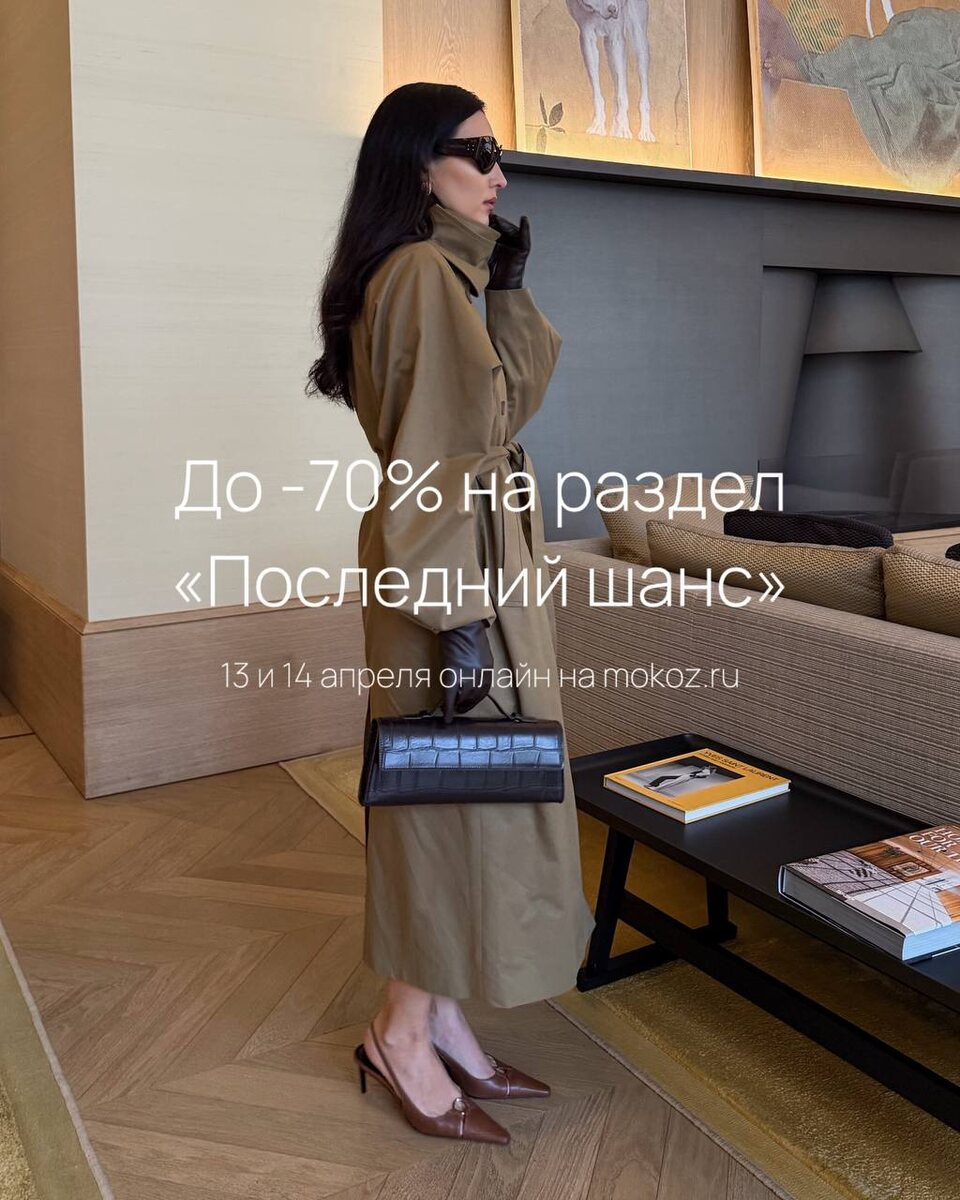 Поэтому мы решили его продлить онлайн: до -70% на раздел «Последний шанс» ещё на два дня, до 14 апреля включительно. Здесь собраны изделия, которые уже скоро покинут сайт и больше не будут их повторов. Самое время создавать образы для тёплого сезона. Осталось совсем немного, чтобы забрать их по самой приятной цене на mokoz.ru 🧡 Подписывайтесь на наш новый открытый канал в Max, чтобы следить за анонсами и специальным предложениями