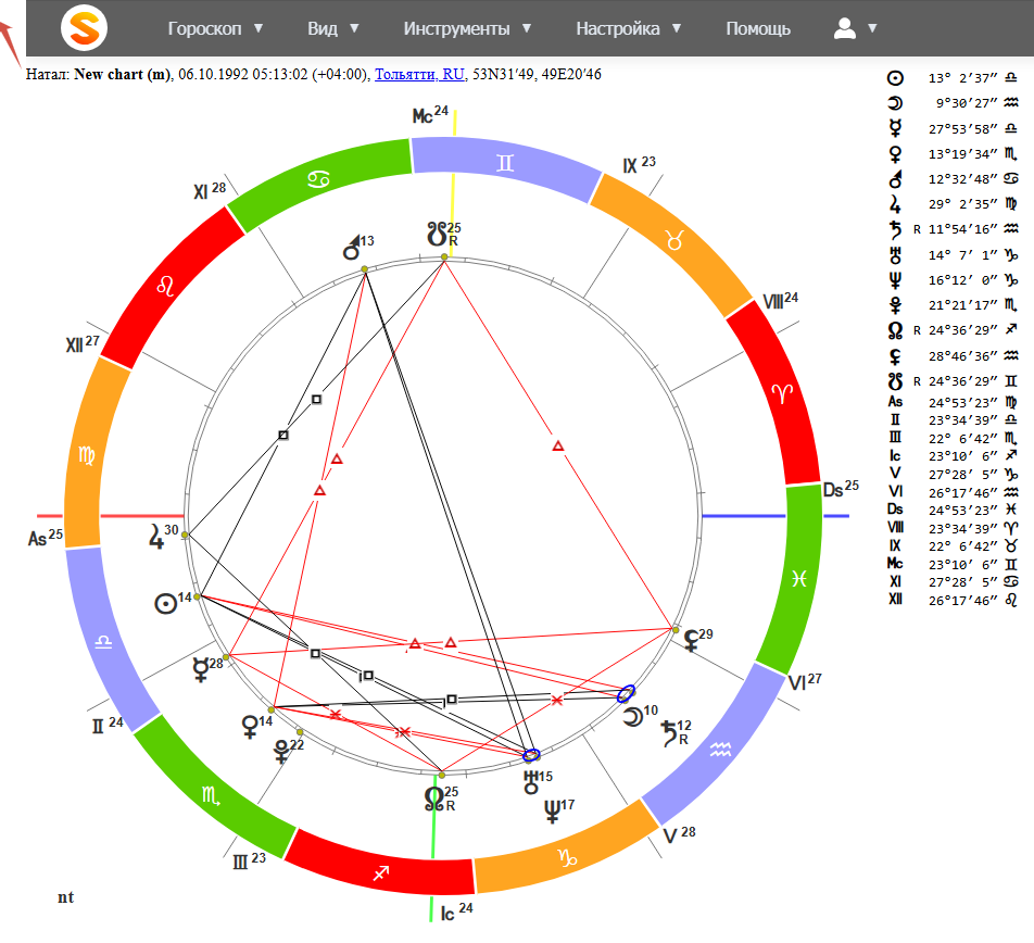В сети масса вариантов времени рождения Валерии, есть и чьи то попытки ректификации, есть информация "со слов мамы". Опираясь на второй вариант, у меня не очень "бьется картинка" и очень хочется сдвинуть время на 2 часа ранее. Во- первых, в западной системе Валерии визуально больше подошел бы вариант с Девой на асценденте и управителем Меркурием в Весах, стоящим во 2 доме. Да и нахождение во 2 доме Меркурия и Венеры чем не показатели на торговлю инфопродуктами и товарами красоты?