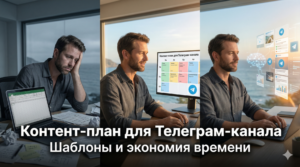 Помню, как пять лет назад я сидел над пустой таблицей Excel и пытался выдавить из себя темы для постов на месяц вперед. Глаз дергался, кофе в чашке давно остыл, а идеи закончились на пункте "Рассказать о компании". Один мой клиент, владелец строительной фирмы, тратил на контент-план для Телеграм-канала целые выходные, вместо того чтобы отдыхать с семьей. Это классическая ловушка: вы думаете, что обязаны быть писателем, дизайнером и стратегом в одном флаконе. На самом деле, ручное планирование сегодня - это непозволительная роскошь, которая сжигает ваше время и нервы. Ниже я расскажу про контент-план для Телеграм-канала простым языком. Без воды, опираясь на свои 10 лет практики. Вы узнаете: какие типы постов реально работают, как составить сетку за 15 минут, основные ошибки при ведении канала и секретный способ автоматизировать все "под ключ".