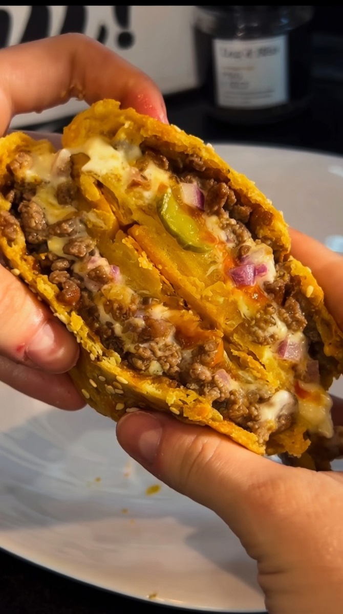 Представьте: вы достаёте из морозилки пачку слоёного теста, и через 25 минут у вас на столе уже ароматные, хрустящие бургеры с тянущимся сыром внутри. Звучит как мечта? Это не мечта, это мой новый любимый лайфхак 2026 года. Никаких дрожжей, никакой возни с булочками и никакой горы посуды. Просто раскатал — завернул — запёк. Видео рецепта и приготовления смотрим тут! А самое приятное — этот бургер можно сделать в двух вариантах: сытный классический и низкокалорийный с курицей (всего ~320 ккал на штуку).Вся семья есть с удовольствием, дети особенно в восторге! Что нам понадобится? (на 4 больших бургера) Для низкокалорийной версии — вместо говяжьего фарша берём куриную грудку, измельчённую в блендере. Как готовим: 2.Каждую часть смажьте соусом, выложите фарш, ломтики помидора, красный лук, огурцы, тёртый сыр и кусочек плавленого. 3.Сверните аккуратным конвертиком или узелком. 4.Смажьте желтком, посыпьте кунжутом и отправьте в духовку при 180°C на 15–20 минут. Мой секретный код сочности: