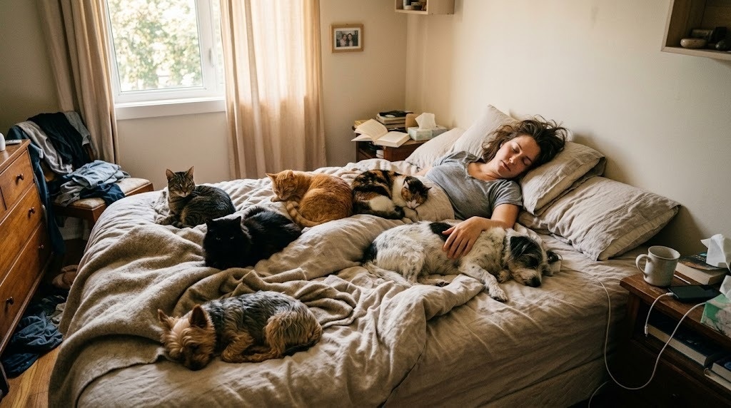10 кошек и 2 собаки на одной кровати: мой личный ночной цирк без выходных.