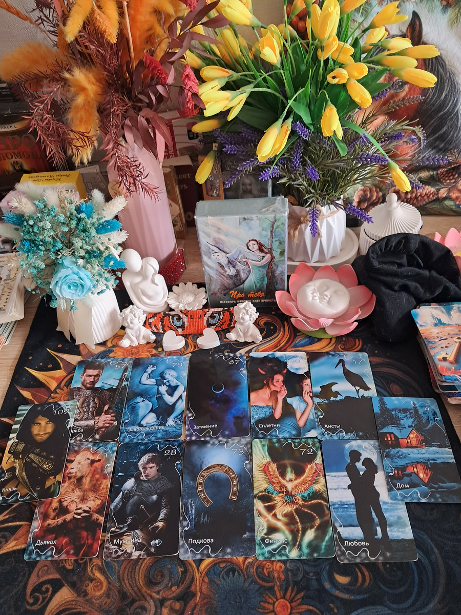 Ваши предки вышли на связь через оракул «Затмение» — и их послание очень мощное. Они не шепчут, они кричат: «Хватит терпеть! Пора вырываться из старых сценариев». Карты говорят, что вы реализуетесь сразу в трёх сферах: через карьерный/статусный взлёт (Князь), через создание дома (Дом) и через любовь (Феникс + Любовь). Но сначала — послание предков.