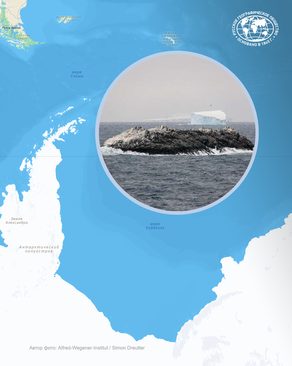 Длина острова около 130 метров, ширина — 50 метров, на 16 метров он возвышается над уровнем воды. В этом году международная экспедиционная группа исследует северо-западную часть моря Уэдделла в Антарктике на борту ледокола Polarstern. В один момент команде пришлось укрыться в бухте острова Жуанвиль, где учёные и обнаружили остров, который ранее был обозначен как опасная зона. «Я изучил все береговые линии, которые были у нас в батиметрической лаборатории, и вернулся на мостик. Выглянув в иллюминатор, мы увидели „айсберг“, который выглядел каким-то грязным. При ближайшем рассмотрении мы поняли, что это, скорее всего, скала. Тогда мы сменили курс и направились в ту сторону, и вскоре стало ясно, что перед нами остров» — рассказал Саймон Дройтер из института Альфреда Вегенера. Пока остаётся неясно, почему остров был обозначен как опасная зона, а в других источниках — как береговая линия. Также выяснилось, что положение острова на навигационной карте отличается от фактического на одну морск
