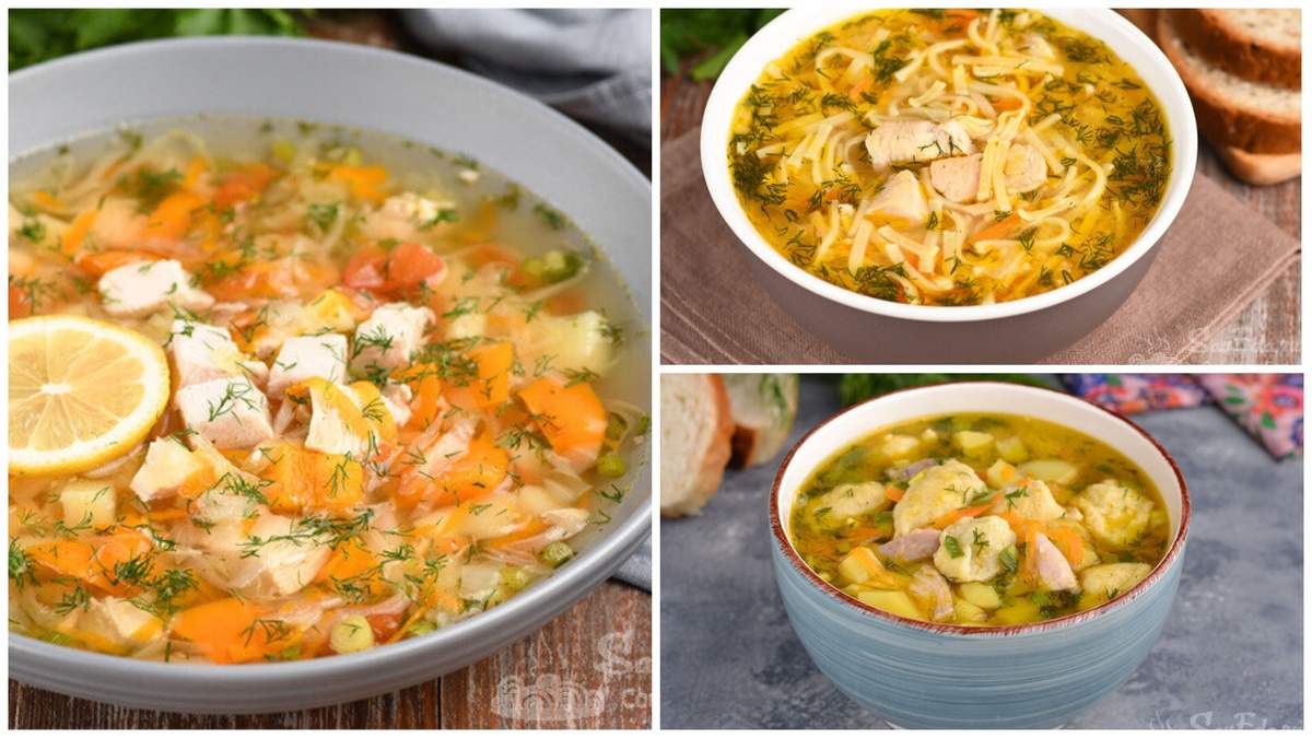 Они готовятся без лишних хлопот и не заставляют стоять у плиты часами. Эти 3 рецепта куриного супа стали моими любимыми. Казалось бы, ну что нового можно придумать с обычной курицей? Но у каждой хозяйки припрятаны свои секреты. В этой подборке я объединила три проверенных рецепта: один — густой и сытный, второй — легкий и диетический, а третий — настоящий спаситель, когда обед нужно приготовить быстро, буквально за 25 минут. Надеюсь, эти идеи пригодятся и вам! 1. Куриный суп с клецками. Этот суп — настоящая «палочка-выручалочка». Его главный секрет в быстрых клецках из жидкого теста, которые готовятся буквально за минуту. На 3 литра супа. Любые курные части (500 г, у меня бедра и спинка) заливаем водой (2,5 л), доводим до кипения, снимаем пену. Дополняем солью, перцем, лавровым листом и варим 35 минут. Затем вынимаем, остужаем и снимаем мясо с костей. В бульон отправляем кубики картофель (4 шт.) и варим около 15 минут. Мелко нарезанный лук (1 шт.) и крупно натертую морковь (1 шт.) обж