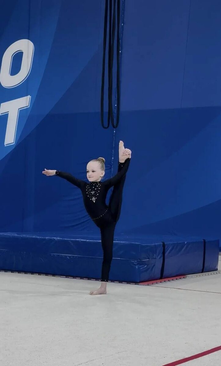 Ученица 1 «Б» класса Агата в минувшее воскресенье приняла участие во всероссийских спортивных соревнованиях по воздушной гимнастике