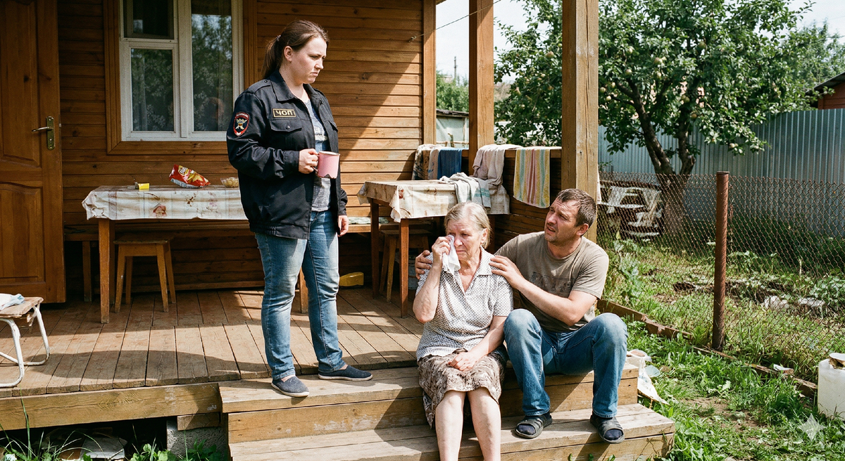 — Коля, она правда полицию звонит! — Женщина в халате схватила мужа за локоть. — Я говорила тебе, подозрительно это всё! Слишком дёшево для такого дома!