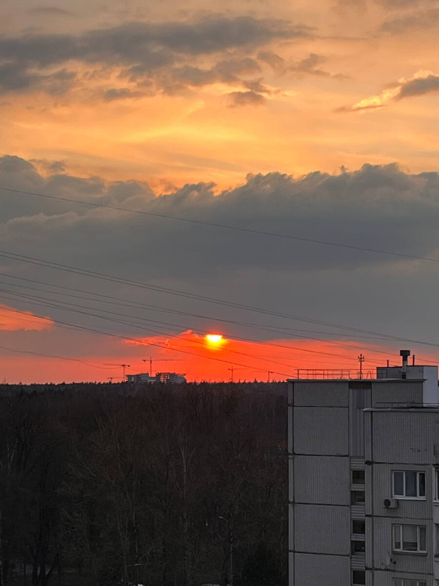 Закат в цветах российского флага, снятый в День космонавтики из 2-го микрорайона
