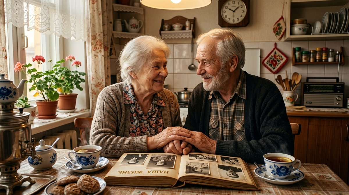 Запах печеных яблок с корицей плыл по тесной, но невероятно уютной кухне. Густой. Домашний. Настоящий, из самого раннего детства. Старые ходики на стене отмеряли время глухим, успокаивающим тиканьем. Семьдесят два года. Анна Ивановна, надев очки на самый кончик носа, медленно перебирала пожелтевшие фотографии из бархатного альбома. Завтра они с Колей отмечают золотую свадьбу. Полвека вместе. Невероятная цифра в наше стремительное время.
