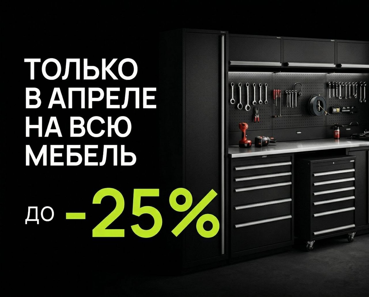 Весь апрель — скидка до 25% на модульную мебель для гаражей. Мы создаём пространства, в которых хочется работать: стеллажи, верстаки, тумбы и системы хранения для гаражей, автосервисов и детейлинг-студий. 👉 Пишите нашему менеджеру— подберём решение под ваш проект
