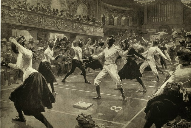 В ноябре 1889 г. в Риме состоялся большой Национальный турнир по фехтованию. Допущенными снарядами были: «шпага длиной 90 см и сабля длиной 88 см». 12 членов жюри назначались оргкомитетом турнира, а 13 других выбирались самими участниками.