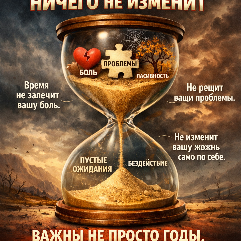 Время — это пустой сосуд, а изменения происходят только через наши действия, выборы и внутреннюю работу. Когда мы просто «ждем», надеясь, что время решит проблему, мы откладываем ответственность на обстоятельства. Мы создаем иллюзию движения вперед, но на самом деле остаемся в точке, в которой были. Проходит месяц, год, и если мы ничего не делаем, боль и неудовлетворение продолжают жить в нас, лишь слегка притупленные рутиной.