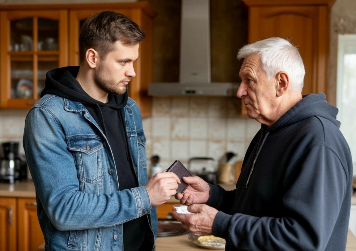 Учитель молча взял бумажник, проверил содержимое.