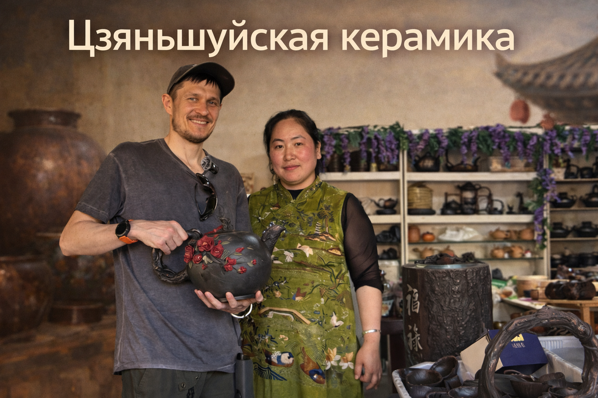 Цзяньшуйская керамика — это не просто посуда, а настоящее искусство, сформированное тысячелетиями традиций Китая. Этот уникальный вид керамики родом из провинции Юньнань, где природа буквально щедро рассыпала сырьё для мастеров: горы глины, из которой создаются изысканные чайники, чаши и декоративные изделия. Путешествие в сердце керамики Китая Не без приключений, но всё-таки удалось добраться из Куньмина в Цзяньшуй — признанную столицу керамики Китая. Чайники из цзяньшуйской керамики ЗДЕСЬ Первым пунктом стал музей, где раскрывается весь путь создания изделия — от сырой земли до произведения искусства. Там можно увидеть каждый этап: • как добывают глину • как её разминают • как формируют изделия • как происходит обжиг Это не просто производство — это почти медитативный ритуал, где важна каждая деталь. Уникальные виды глины Цзяньшуй В регионе используется сразу пять видов глины: • серая • жёлтая • белая • цветная • фиолетовая По дороге в Цзяньшуй можно увидеть целые горы этих природн