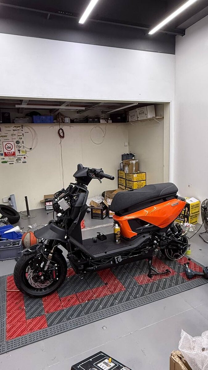 ⚡️🔋 Собираем Любой сложности апгрейд под Ваше ТЗ 📝 ➖➖➖➖➖➖➖➖➖➖➖ Электроскутер Ninebot M5 100 Черно-оранжевый 🛵 Комплектующие и запчасти: + Литиевая батарея 74В/200Ач, BMS-1050A✔️ + Мотор-колесо QSMOTOR 20 000 WP ✔️ + Контроллер APT 1200/1800A (батарейный / фазный ток)✔️ + Автомат выключатель 500А ✔️ + Водяное охлаждение для контроллера ✔️ + Передние перья GFE GT002 + траверса ✔️ + Задние амортизаторы GFE ✔️ + 2 шт. Тормозные диски 245 мм ✔️ + Тормозной задний диск 220 мм ✔️ + 2 шт. Brembo передний тормозной суппорт правый / левый (черный с красным лого)✔️ + Brembo задний тормозной суппорт (черный с красным лого)✔️ + Колесный диск Черный GFE с двумя фланцами ✔️ + Передняя покрышка Мишлен 120/70-12✔️ + Задняя покрышка Мишлен 140/70-12 ✔️ + Армированные тормозные шланги комплект ✔️ + Переднее Крыло Черный глянец Victor-One ✔️ + Задний подкрылок + крыло Черное с красной подсветкой ✔️ + Усиленный маятник 360 мм Черный SMRT✔️ + Мощная фара 210Вт ✔️ + JBL-Колонки ✔️ + Подогрев сиденья М
