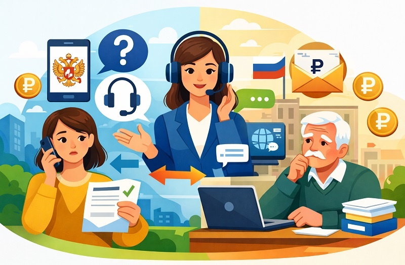 Когда дело касается пенсии, пособий или льгот, чаще всего возникает одна и та же проблема — непонятно, куда обращаться. Кто-то сразу идет в отделение, кто-то зависает на сайте, а кто-то просто теряется в потоке информации. На самом деле всё проще: у Социального фонда есть несколько каналов связи, и каждый из них подходит под свою задачу. Если выбрать правильный — можно сэкономить часы, а иногда и дни. Разбираемся, как действовать. ------------------------------------------------------------------------------------ Оформите пенсионную карту, на которую будут приходить выплаты. Это можно сделать онлайн — обычно процесс занимает минимум времени, а в дальнейшем избавляет от лишних действий. ------------------------------------------------------------------------------------ Если нужно срочно понять, что делать — начинайте со звонка. Телефон: 8 (800) 100-00-01