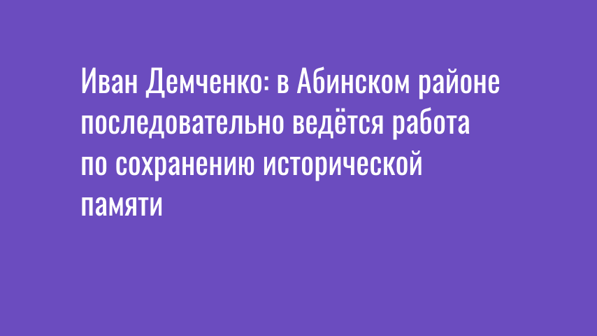 Иван Демченко: в Абинском районе последовательно ведётся работа по сохранению исторической памяти