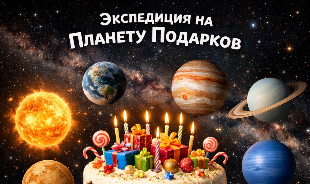 (Ведущий) Капитан Марс – носит яркий, немного потрепанный космический костюм, возможно, с нашивками в виде инопланетных существ, звездочек или планет. Можно использовать Аудиозапись Капитан Марс начало_01 Голос за кадром Капитан Марс: Приветствую, мои юные звездочки и космические исследователи! Говорит капитан Марс, ваш верный проводник в дебрях галактики! Сегодня у нас не просто день рождения, а настоящая космическая миссия! Я весь в предвкушении, мои солнечные батареи почти разряжены от волнения! Сегодня мы не просто празднуем – мы ЗАВОЕВЫВАЕМ "Планету Подарков"! Готовы отправиться? Чтобы мы смогли найти планету подарков, нам нужно добраться до центра управления галактическими навигационными данными и собрать там недостающие фрагменты кода! Это будет непросто, но вместе мы справимся! Продолжает звучать Фоновый трек 01 Капитан Марс пританцовывает перед столом с ноутбуком, или просто разложенными бумагами. На столе беспорядок: разложены космические карты (изображения звездного неба, пл