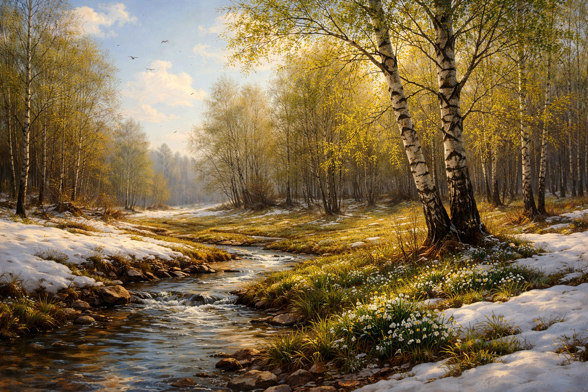Иногда кажется, что главный герой его весенних стихов - не человек и даже не природа, а само пробуждение. Та энергия, которая проходит сквозь все: сквозь снег, почву, воздух, ветви, воду, человеческое сердце. Она может быть радостной, бурной, неровной, почти мучительной - но она всегда сильнее застоя. И это дает читателю не поверхностное "хорошее настроение", а более редкую вещь - ощущение, что мир не закостенел окончательно, что в нем по-прежнему возможно обновление.