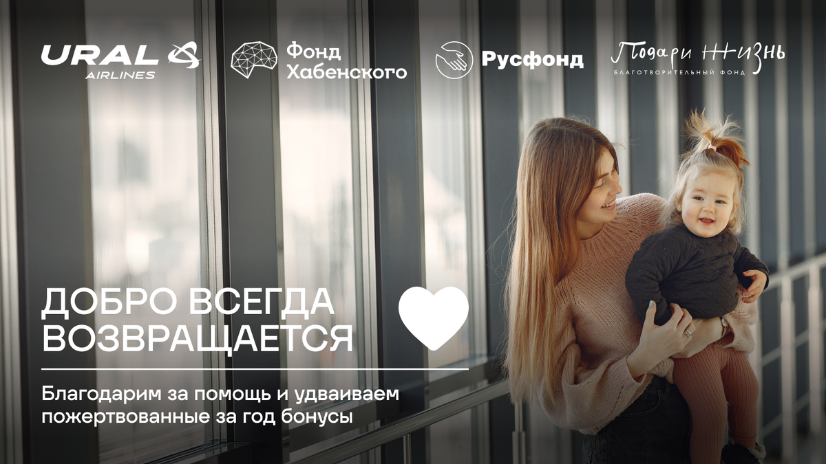 В День мецената и благотворителя хотим напомнить, что у нас есть проект «Крылья Добра». Благодаря нему участники программы лояльности могут перевести накопленные бонусы в партнёрские фонды: 🕊 Фонд Хабенского — для детей с заболеваниями головного мозга; 🕊 Русфонд — для детей с онкологией, а также заболеваниями сердца и двигательной системы. А скоро пожертвовать бонусы можно будет и фонду «Подари жизнь», помогающему детям с тяжелыми онкологическими и гематологическими заболеваниями. В честь 25-летия программы лояльности «Крылья» мы удвоили все бонусы, которые наши путешественники пожертвовали за прошедший год. В следующем году бонусов может стать ещё больше — присоединяйтесь к нашей программе! Важен даже небольшой вклад: пожертвованные бонусы помогают детям отправиться на реабилитацию или вернуться домой — а значит, и к обычной жизни. Как перевести свои бонусы? 1. Авторизуйтесь на нашем сайте. 2. Перейдите на страницу «Крылья добра». 3. Нажмите кнопку «Передать бонусы» под выбранным фо