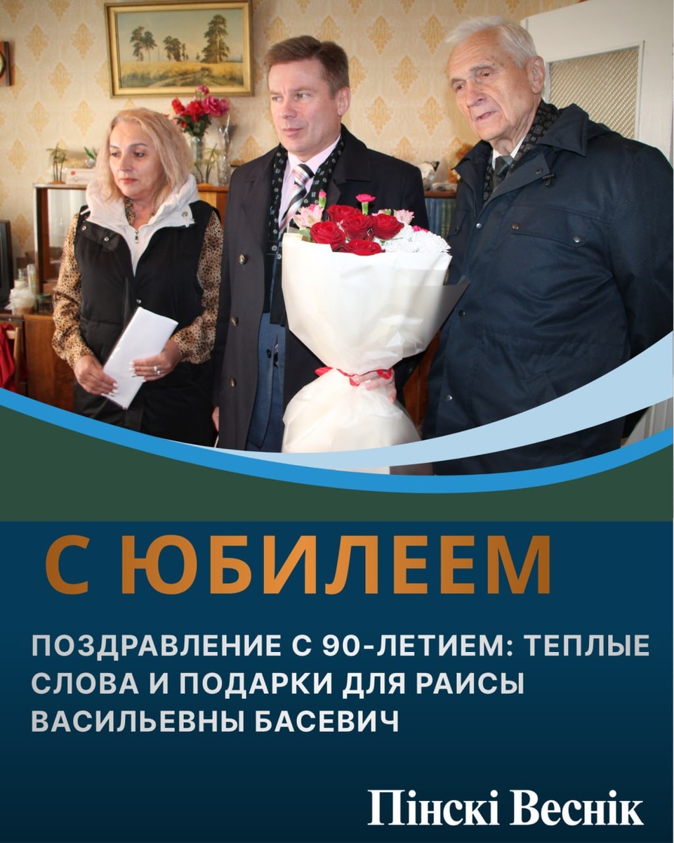 Кисель и старший инспектор финансового управления горисполкома Жанна Кучинская посетили Раису Васильевну Басевич и поздравили ее. В эти дни она отмечает свой 90-летний юбилей. В финансовом отделе горисполкома Раиса Васильевна работала с 1955 года. Сначала бухгалтером, старшим инспектором, с 1967-го – начальником бюджетного отдела, с 1968-го – еще и заместителем заведующего горфо. За свой труд имеет множество наград, в том числе Почетную грамоту Министерства финансов СССР и БССР, знак «Отличник финансовой системы». От души желаем ей всяческих благ! @Пинский Вестник 📱Ютуб 📱ВК 📱ИНСТАГРАМ 📱ОК 📱ФЕЙСБУК 📱ТИК ТОК Сайт Прислать новость