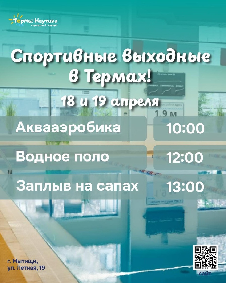 » 💦 18 и 19 апреля добавляем немного движения в отдых: ✔ 10:00 — аквааэробика ✔ 12:00 — водное поло ✔ 13:00 — заплыв на сапах Можно начать день активно, а потом — спокойно перейти в режим расслабления: тёплая вода, парные, отдых без спешки ✨ Идеальный баланс: немного активности → максимум удовольствия Сохраняйте, чтобы не потерять расписание И берите с собой тех, с кем будет ещё веселее 💙