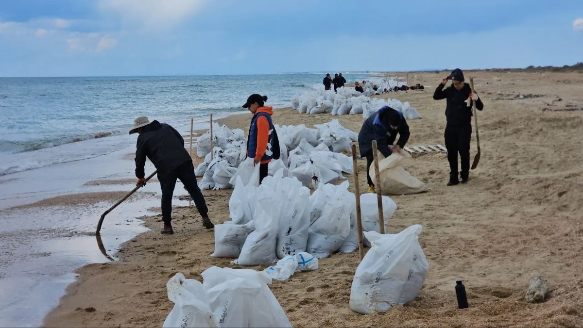 Сегодня неравнодушные жители Анапы подключились к работам по очистке пляжных территории от выброса нефтепродуктов в районе Витязево