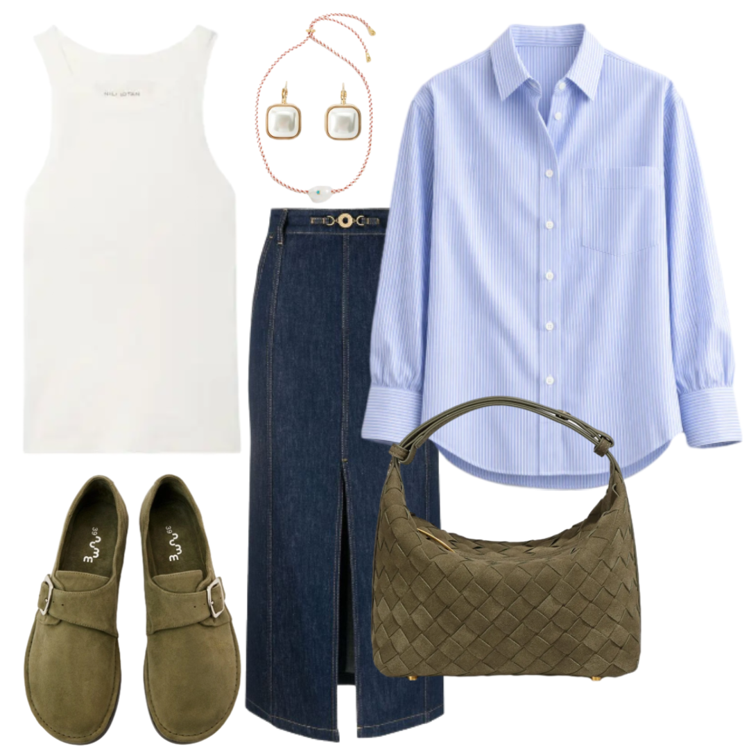 Весна — идеальное время, чтобы обновить гардероб, и именно рубашка становится главной героиней сезона. Но не классическая скучная, а с характером: с фактурой, цветом, интересным кроем. Я собрала образы, которые выглядят дорого, современно и при этом легко повторяются. Рубашка в бело-голубую полоску - это уже классика, которая уместна в разных ситуациях. Она добавляет образу свежести и делает его более собранным без лишней строгости. Джинсовая юбка миди вносит расслабленность и делает комплект современным, убирая ощущение «офисности». В итоге получается гармоничный баланс: классика сверху и лёгкий casual снизу. Полосатая рубашка в тёплом коралловом оттенке сразу освежает образ и делает его более живым. Джинсы здесь выступают спокойной базой, чтобы не перегружать комплект и сохранить баланс. Замшевый жакет добавляет глубины за счёт фактуры и делает образ более дорогим и собранным. Клетчатая рубашка здесь - главный элемент образа: именно она задаёт настроение и делает комплект не ску