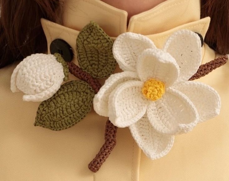 Вязаный цветок в качестве обвеса — очень тёплый и