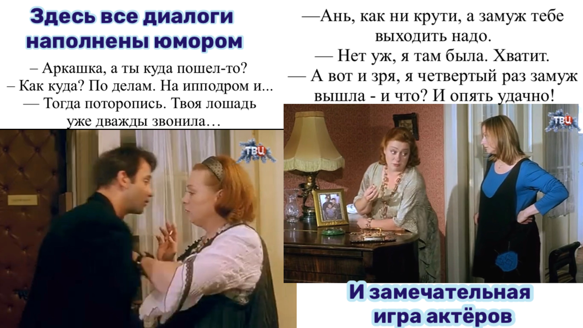 Мне больше всего понравилась её подруга Муся — очень весёлая и жизнерадостная девушка. Эту роль замечательно исполнила Мария Аронова. Именно Муся всегда поддерживала Анну и помогала ей справляться с трудностями на работе и в жизни.