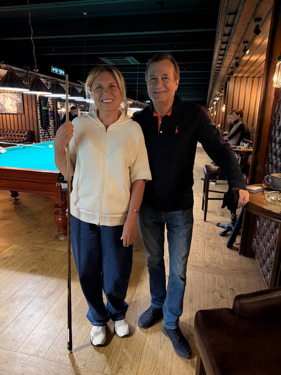 🎱 Бильярдный турнир, эмоции, азарт — всё как раньше. Наша команда клуба Титан сыграла против команды актёров — Андрей Градов, Андрей Смоляков, Виктор Добронравов. Ребята крутые, но… Титан победил 😄🏆Было весело — соскучилась по этому ощущению турнирного азарта! Кто здесь помнит, что я мастер спорта по бильярду? Много лет играла профессионально, а потом была комментатором на федеральном канале 🎙️
