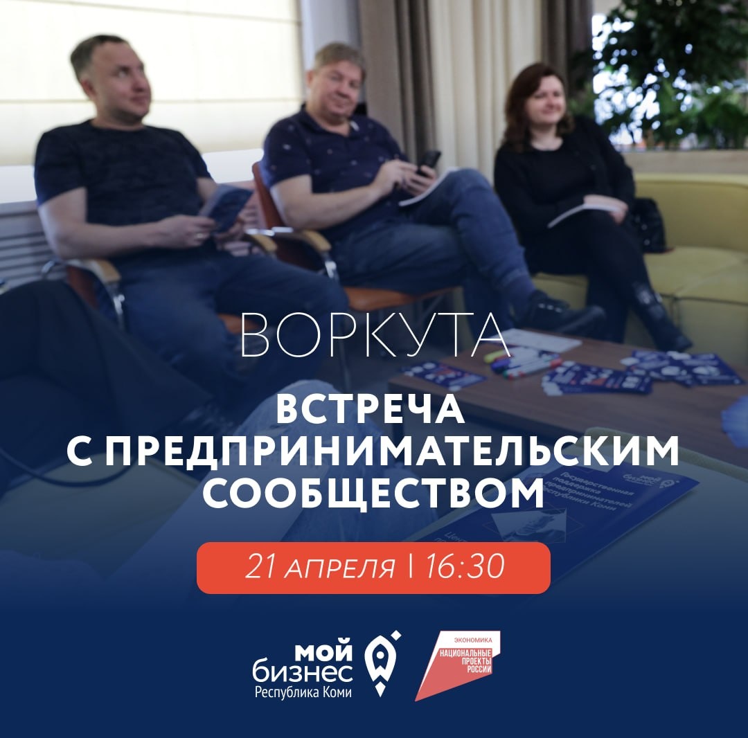 21 апреля Центр «Мой бизнес» Коми проведёт выездную рабочую встречу с предпринимательским сообществом Воркуты. 📍 Место проведения: г. Воркута, ул. Мира, д. 15 (Центр «Мой бизнес») В рамках встречи обсудим: 🔸 Государственные меры поддержки бизнеса 🔸 Сопровождение инвестиционных проектов в Арктической зоне РФ 🔸 Изменения в законодательстве в 2026/2027 году (для новых резидентов АЗРФ) 🔸 Выход на экспорт: от консультации до контракта 🔸 Инструменты привлечения финансовых ресурсов со специалистами Микрокредитной компании Обязательная регистрация по ссылке Это возможность задать вопросы напрямую специалистам инфраструктуры поддержки, обсудить текущие задачи бизнеса и получить актуальную информацию о доступных инструментах развития. Сайт|Вконтакте|MAX|Telegram Центр «Мой бизнес» Коми работает по нацпроекту «Эффективная и конкурентная экономика»