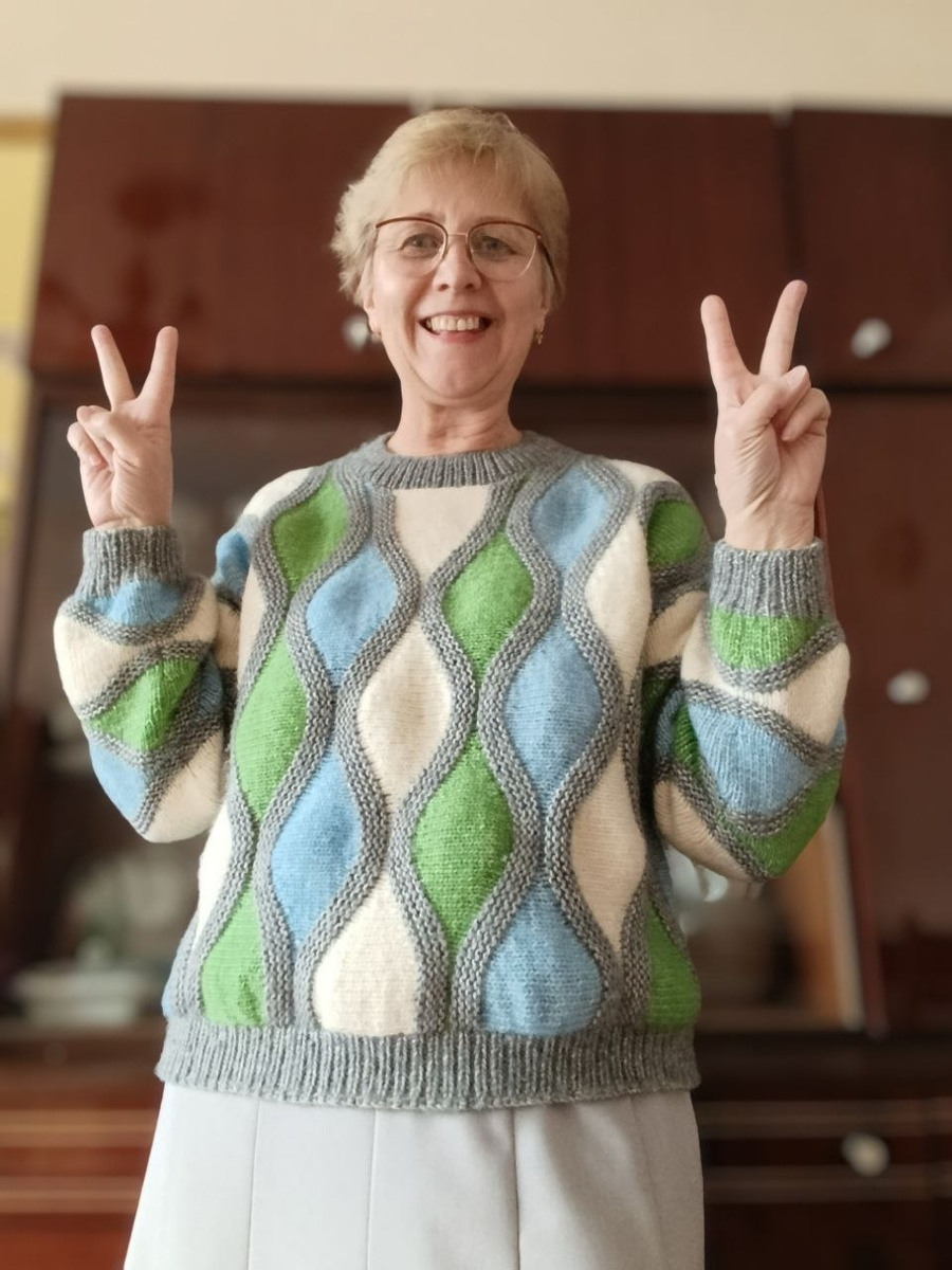 Вы можете в это поверить? Что Людмила впервые вязала жаккард в модели Санторини 👍