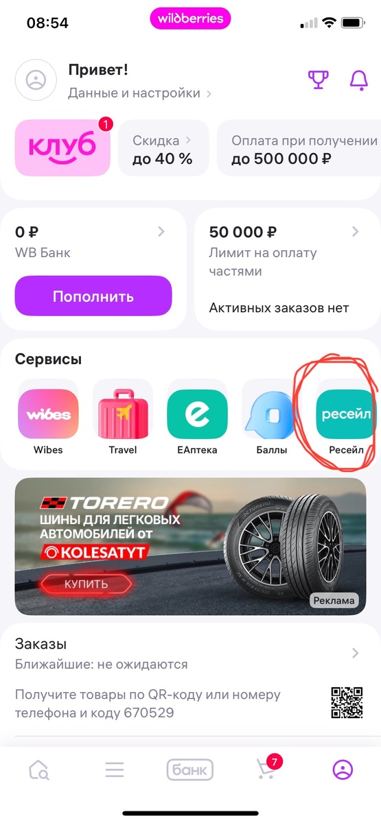 Кто не знает, на ВБ есть раздел «Ресейл», смотрите на скрин ниже, я его обвела красным кружочком . 👇