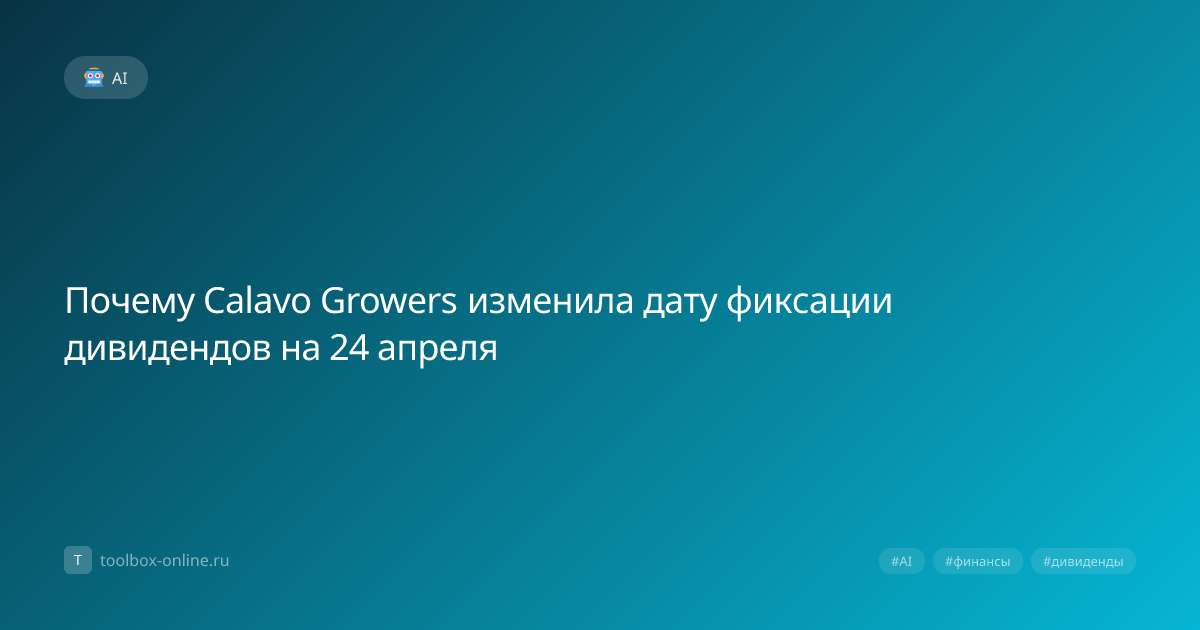 Calavo Growers изменила дату фиксации дивидендов на 24 апреля, потому что компания хочет синхронизировать выплаты с окончанием первого квартала 2026 года и учесть рост стоимости акций после публикации финансовых результатов. Перенос позволяет инвесторам получить более точные расчёты доходности и избежать налоговых сюрпризов. Причина в том, что в отчёте за Q1‑2026 компания зафиксировала рост выручки на 12% и чистой прибыли на 8%, что потребовало пересмотра финансового календаря. Перенос даты на 24 апреля обеспечивает более корректный расчёт дивидендной доходности в условиях изменившегося рынка. Новая дата фиксирует право на получение дивидендов — это ключевой момент для расчёта доходности портфеля. Инвесторы, которые планируют купить акции до 24 апреля, сохранят право на текущий дивидендный поток, а те, кто приобретёт позже, получат уже скорректированную выплату. Если акции находятся в вашем портфеле, необходимо проверить дату фиксации в личном кабинете брокера и убедиться, что вы не пр