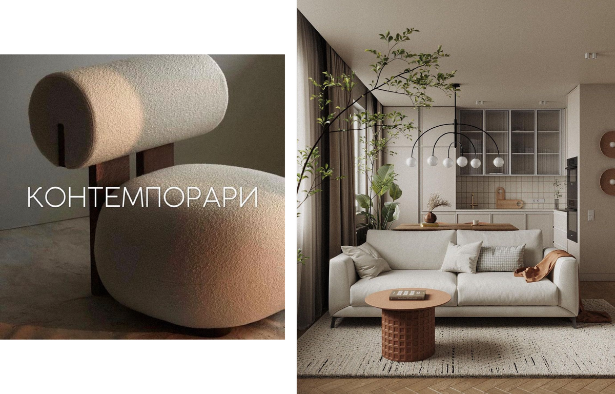 Коротко: contemporary по-английски = «современный, сегодняшний». В 1970-х дизайнеры устали считать стилями только ар-деко, барокко и прованс. Тогда же появился термин contemporary design – как собирательное «всё, что делают прямо сейчас, без привязки к прошлому». Пикантность в том, что стиль не имеет чёткой даты рождения: он родился каждый день последних 50 лет и продолжает расти вместе с нами. Представьте, что контемпорари — это не стиль, а флешмоб: дизайнеры всего мира договорились «сделать так, будто мы только что проснулись и всё ещё в кедах». Основа — три «молчуна»: белый, молочный, светло-серый. Они не кричат, не требуют внимания. Яркое допускается ровно одно: подушка, картина или ваза. Если в комнате два акцента — значит, кто-то не дочитал правила. Прямой угол — король, но он слегка подпилен: диванные подушки закруглены, столешница «плывёт» в эллипс. Дуб светлый, будто его долго уговаривали посветлеть. Бетон — но не грубый, а «гладкий. Металл матовый, а не хромированный: отраж