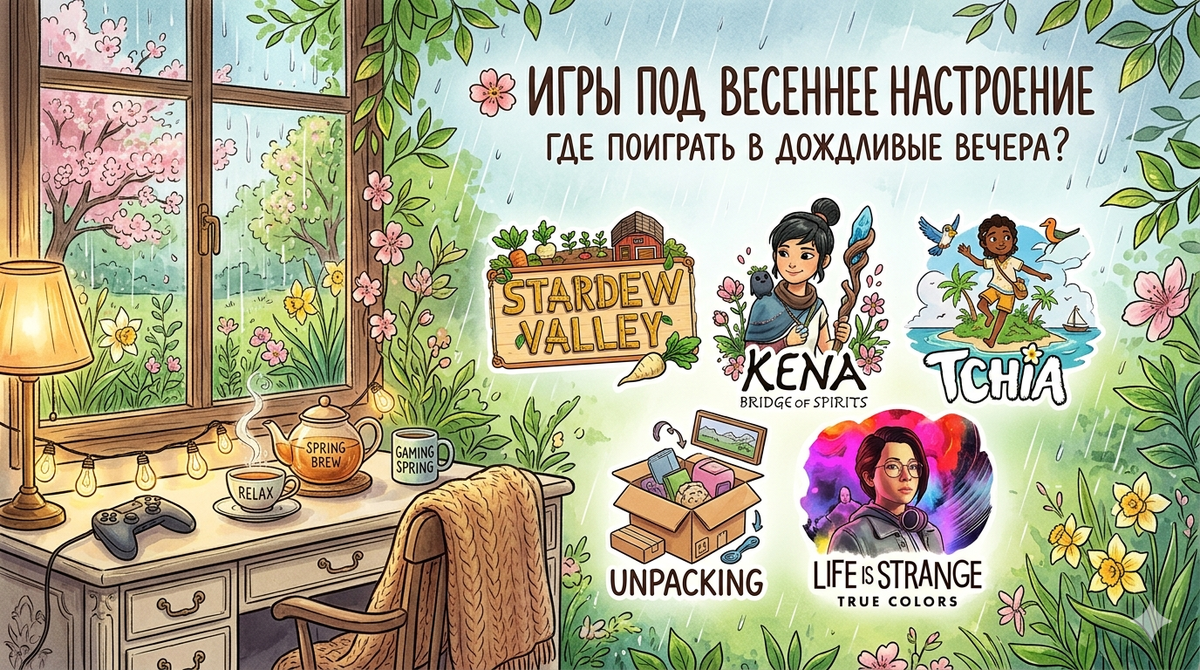 Весна — время переменчивое: то яркое солнце слепит сквозь стекло, то серый дождь заставляет кутаться в плед. Но в этом и есть прелесть! Пока природа просыпается, у нас есть легальный повод провести пару вечеров за уютным геймплеем.