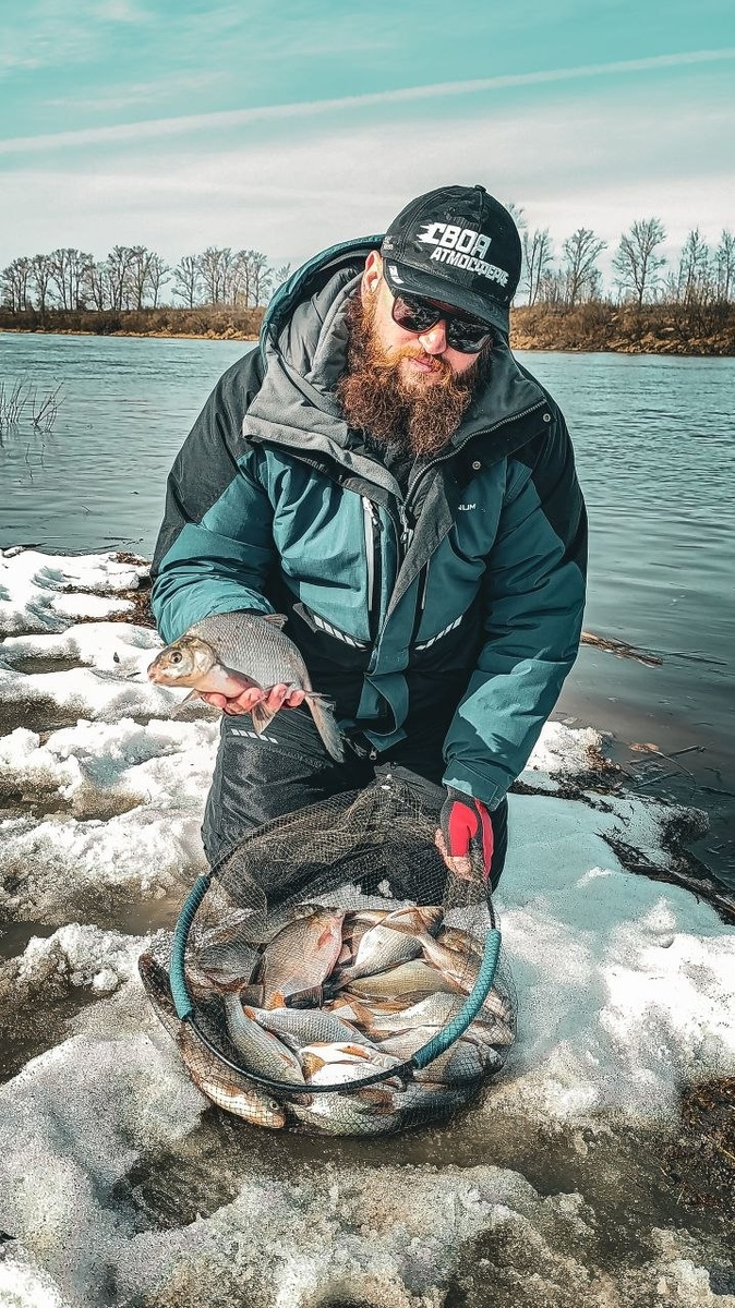После долгих трудовых 7 смен подряд было решено гнать на реку да по-быстрее, ведь скоро ледоход и надо успеть порыбачить. Да и прошлая рыбалка оставила осадок. Локация выбрана, вещи сложены, едем с Максом. На месте уже были в районе 8 утра. Впереди спуск к реке и выбор места, но, видать, не мы одни приехали сюда и вся локация по правой стороне была занята рыболовами. Недолго думая, пошли на левую сторону. Замешивался на берегу, взяв с собой 2 кг черного леща. Промаркерившись, выбираю дистанцию в 23 метра. Глубина в районе 3 метров. Легкий стартовый закорм из 3 кормушек и боевой опарик летит на точку. Рыб капризен, первый час подбор наживки и длины поводка. По итогу отлично работал поводок длиной 50 см, толщина 0,117мм. По кормушкам веса от 50 до 70 гр. Постоянно меняя подачу корма, то дюза, то окно и т.д. Вуаля, первый подлещик красовался перед камерой. Дальше больше, подряд ловлю с десяток подлецов и затишье. Удар, как-будто паровоз… Плотва родная пришла, да еще и добротных размеров
