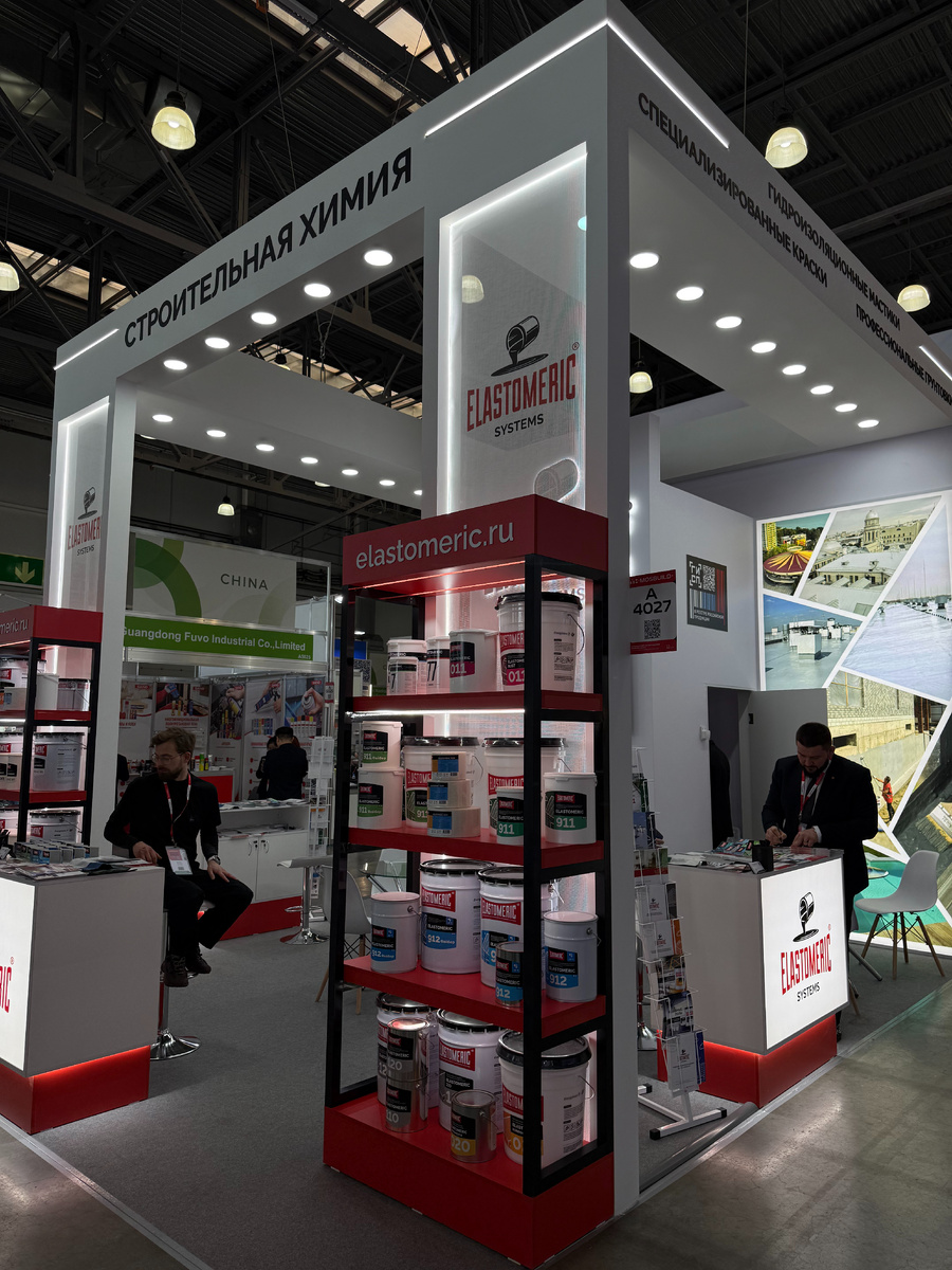 На стенде компании были представлены фиброармированные мастики линейки Elastomeric Fiber для гидроизоляции сложных узлов и примыканий, ремонта кровель и защиты влажных зон внутри помещений. Благодаря армирующим волокнам материалы позволяют выполнять работы без дополнительных лент и мембран, что упрощает технологию нанесения.