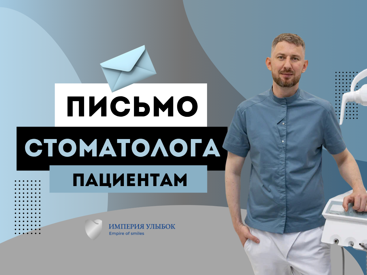 Вам письмо от стоматолога-имплантолога клиники «Империя улыбок» Еремина Дмитрия Александровича. Дважды в неделю наши доктора пишут письма пациентам. В них специалисты рассказывают о лечении, протезировании и имплантации зубов. Подпишитесь на канал стоматологической клиники "Империя улыбок", чтобы получать послания от врачей-стоматологов разных специальностей.