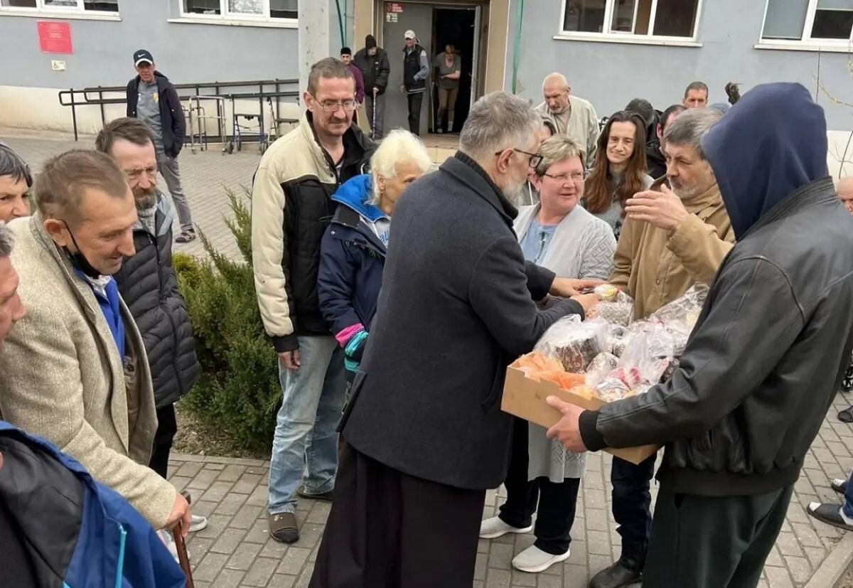 В Калининграде приход храма Космы и Дамиана угостил бездомных пасхальными куличами и яйцами