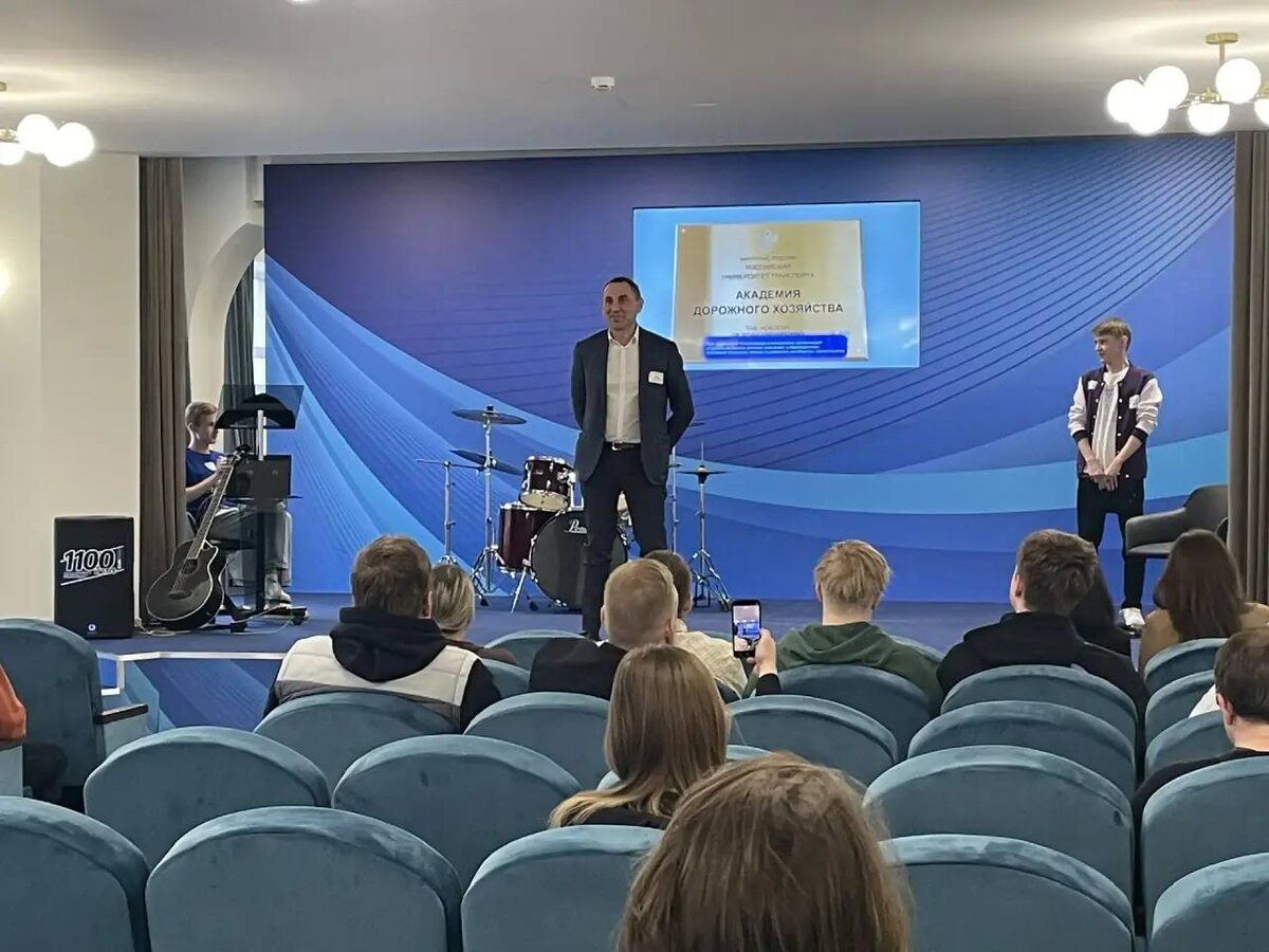 🛣️ 11 апреля Академия дорожного хозяйства открыла свои двери для абитуриентов и их родителей. Мероприятие было подготовлено при участии студентов всех курсов и стало возможностью познакомиться с образовательной средой и студенческой жизнью. Гостей встречали волонтёры, а программу вёл студент Академии Арсений Полевой. В рамках мероприятия также состоялось музыкальное выступление, создавшее живую и комфортную атмосферу для общения. ➡️О направлениях подготовки, возможностях обучения и развитии Академии рассказали директор Алексей Юрьевич Пеньков и заместитель директора по учебно-методической работе Юлия Викторовна Кравец. Отдельное внимание было уделено интерактивной части: студенты провели познавательные игры и командные задания, а также ответили на вопросы абитуриентов и их родителей о процессе обучения и студенческой жизни. Участники получили памятные подарки. ➡️В рамках Дня открытых дверей была представлена выставка работ школьников, а также организовано общение с представителям