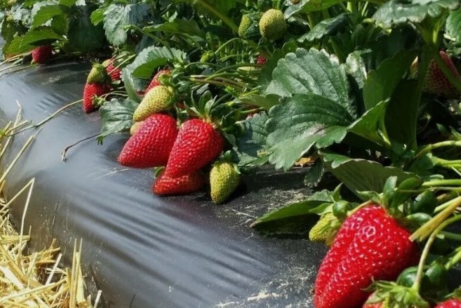 - Укладывать можно даже когда клубника уже растёт на участке.