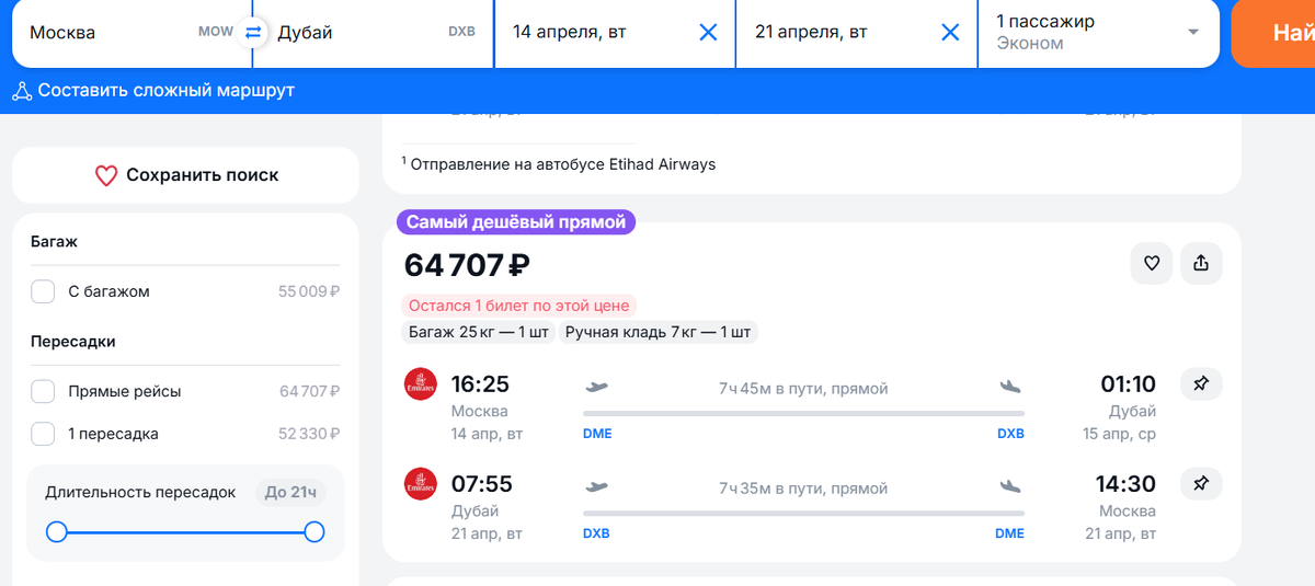 На ближайшие даты можно купить отдельно авиабилеты только арабских