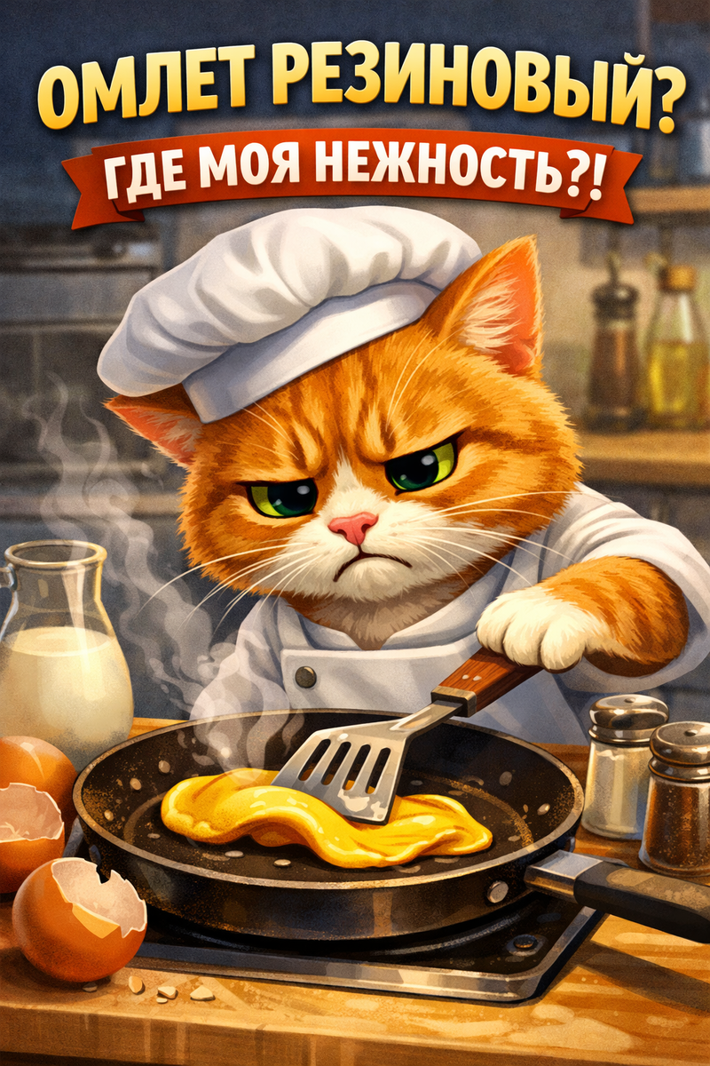 С омлетом есть одна подлая штука: выглядит он как самое простое блюдо на свете. Ну что там сложного — яйца взбил, на сковородку вылил, через пару минут поел. А на деле именно на омлете кухня часто начинает издеваться. В теории должен получиться нежный, пышный, мягкий, чуть влажный внутри. На практике выходит то бледная подошва, то сухая губка, то упругая желтоватая лепёшка, которую жуёшь с выражением лёгкого предательства на лице.