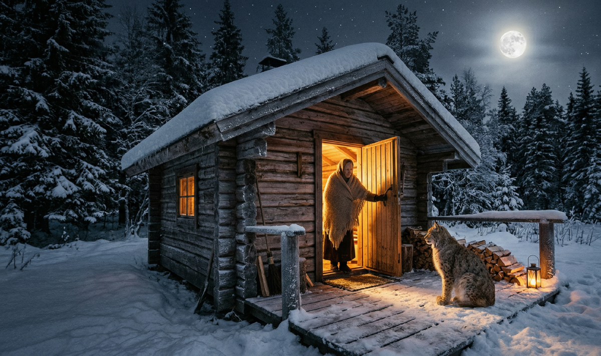 Из темного леса на залитый лунным светом двор вышла огромная рысь. В зубах она несла толстое сосновое полено. Грациозно, почти бесшумно ступая по глубокому снегу своими широкими лапами, дикая кошка приблизилась к крыльцу. Она аккуратно положила свою ношу поверх уже собранной кучи сучьев, немного постояла, прислушиваясь к звукам в доме, после чего тихо, почти по-домашнему заурчала.