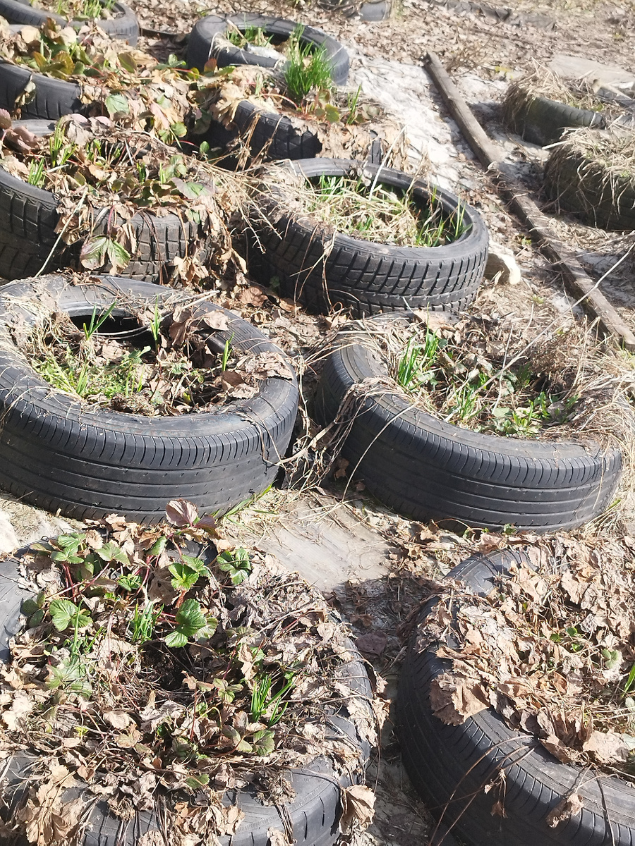 Да, я знаю, что многие боятся шин и ничего в них не сажают. Я не из их числа. И, пожалуйста, не надо по этому поводу "делать фи". Я никому не навязываю свою агротехнику и от других жду также отношения. Меня все рано не переубедить. А лишнее бесполезное сотрясение воздуха лишь увеличит энтропию Вселенной. 😉