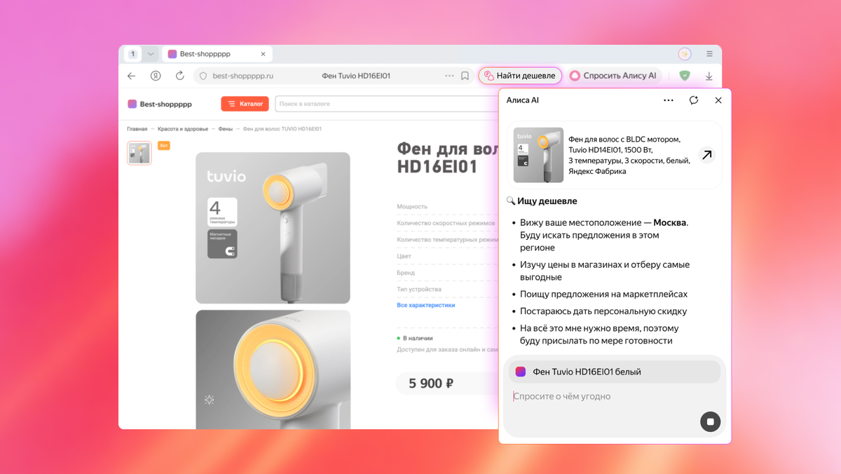 ИИ-агент вместо часов поиска: на примере агента «Найти дешевле» объясняем, как Браузер анализирует контекст и помогает в нужный момент