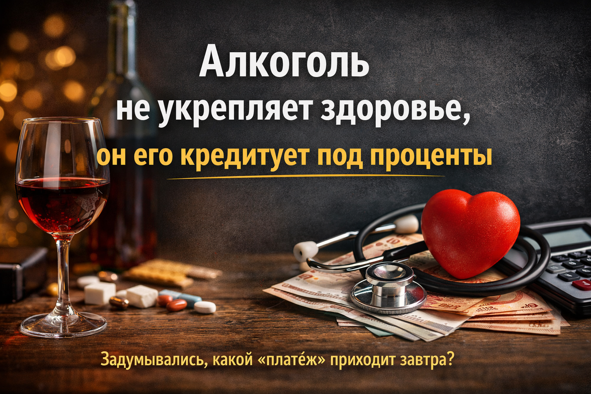 Фраза «бокал вина для здоровья» звучит настолько привычно, что почти не вызывает сомнений. Её повторяют в компаниях, в сторис, в разговорах «по душам» после тяжёлого дня. И в какой-то момент она становится не просто убеждением, а оправданием, за которым удобно спрятать регулярную привычку Проблема в том, что организм не воспринимает алкоголь как способ восстановления или поддержки нервной системы. Для него это вещество, которое нужно как можно быстрее обезвредить. И пока он этим занят, все остальные процессы отходят на второй план. Именно поэтому я часто говорю: алкоголь не укрепляет здоровье, он его кредитует под проценты В моменте действительно может стать легче. Снижается напряжение, появляется ощущение расслабления, мысли становятся менее навязчивыми. Создаётся впечатление, что организм «перезагрузился» и получил необходимую передышку. Но если смотреть глубже, происходит совершенно другой процесс. Пока тело перерабатывает алкоголь, замедляется метаболизм, снижается способность испо